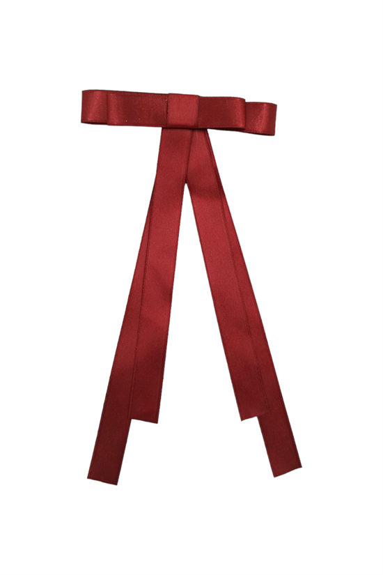Bu aşamada iki parça iplik kullanılarak birleştirilir. Kurdelelerin kenarları dikkatlice yakılır. Yayın orta kısmı küçük bir kurdele parçası ile süslenmiştir.