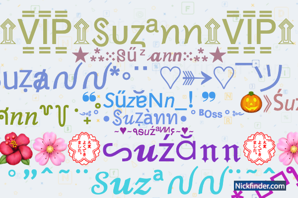 Yakın insanlar Suzanne’a Suzannochka, Susanka veya Sunny biçimini kullanarak sevgiyle hitap ederler. Arkadaş çevresinde bu isim Sana, Suna veya Sue olarak kısaltılır.